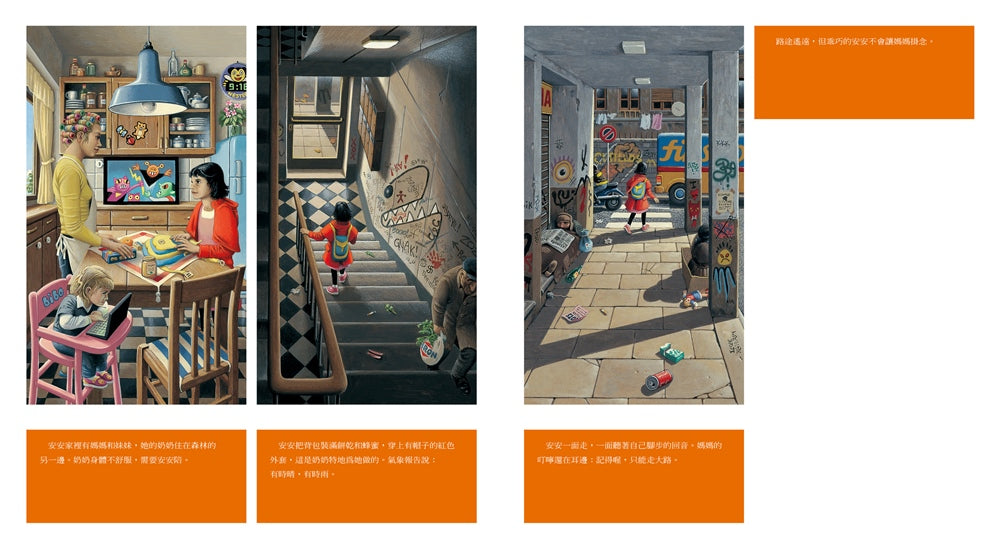 ★ 保留〈小紅帽〉故事中的警示訊息,加入當代消費社會的華麗與頹靡、少女萌發的慾望,及城市中疏離的人際關係。一幕幕的城市切片,重新演繹童話經典。