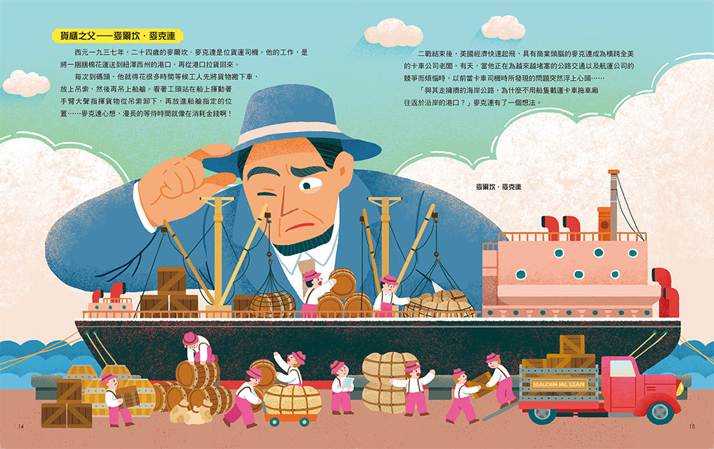本書除了可以讓孩子們了解貨櫃運輸發展的來龍去脈以外,更運用貨櫃之父麥克連的故事,凸顯「解決問題以及創新實踐」的力量是可以改變世界的,這是最令人感動與激賞之處,也是我想鄭重推薦給大家這本好書的主因。——臺灣港務公司總經理 陳劭良