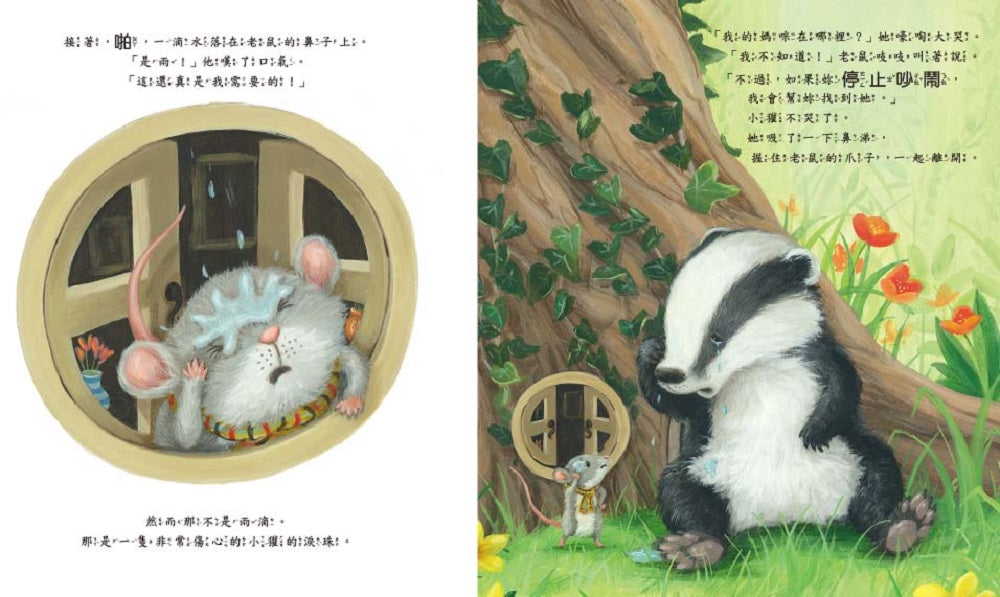 某天,一隻迷路的獾寶寶哭著來到他的家門口,