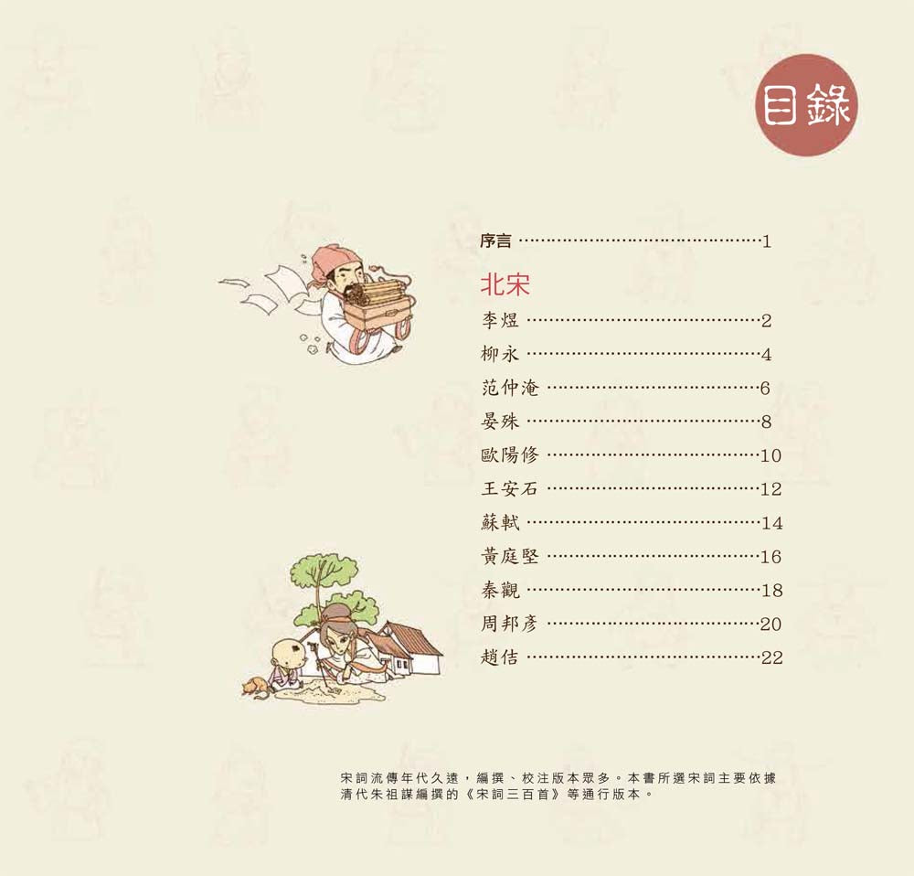 以詞人生平經歷為主線,結合宋代歷史上的重大事件,引出詞人在各個階段的人生經歷:他們在不同時期經歷了什麼事、進而創作了哪些詞,詞風上又出現了哪些轉變等等;再穿插許多與詞人相關的典故及小趣聞,除了增加趣味性,更可藉此改變孩子們對宋詞一貫的乏味看法。