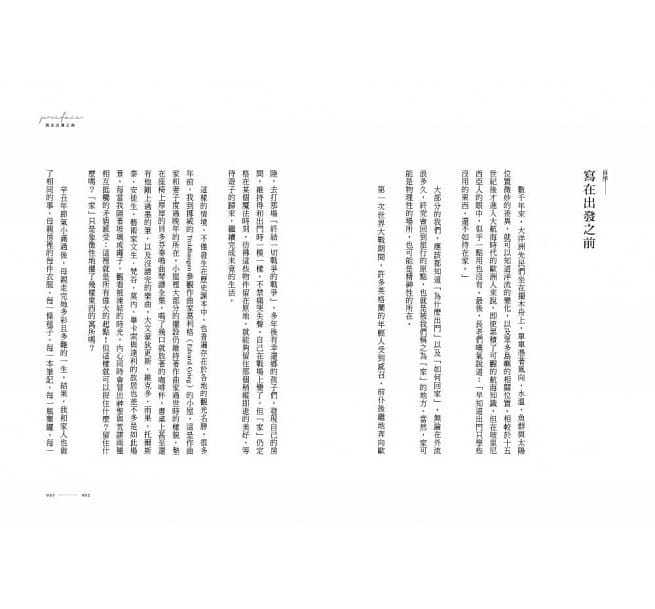 旅行的目的,其實是為了追求幸福,然而旅行也和追求幸福的過程一樣,有著大家避而不談,充斥著幻滅、痛苦與絕望的一面。踏出家門,需要一套自圓其說的心理準備,待在家也需要許多意想不到的理由,飄泊多年,謝哲青才終於明白,或許家的熟悉與溫暖,才是我們歷劫歸來之後,所努力找尋的一切。