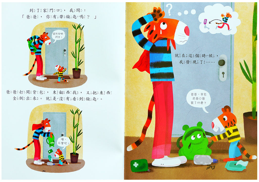 「怎麼了,爸爸?」小孩問。 爸爸說:「我忘了帶錢包!」