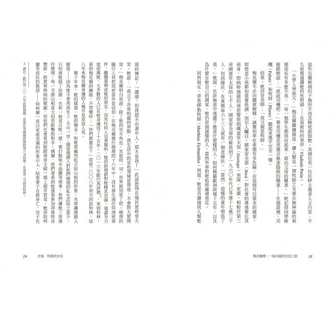 一幅引人注目、令人難忘的肖像……安格拉.梅克爾的一生證明了承諾的力量、勤奮及政治的可能性。本書以洞察力和優雅的方式,講述了這段故事。——喬恩‧馬查姆(Jon Meacham),2009年普立茲獎傳記或自傳類得主