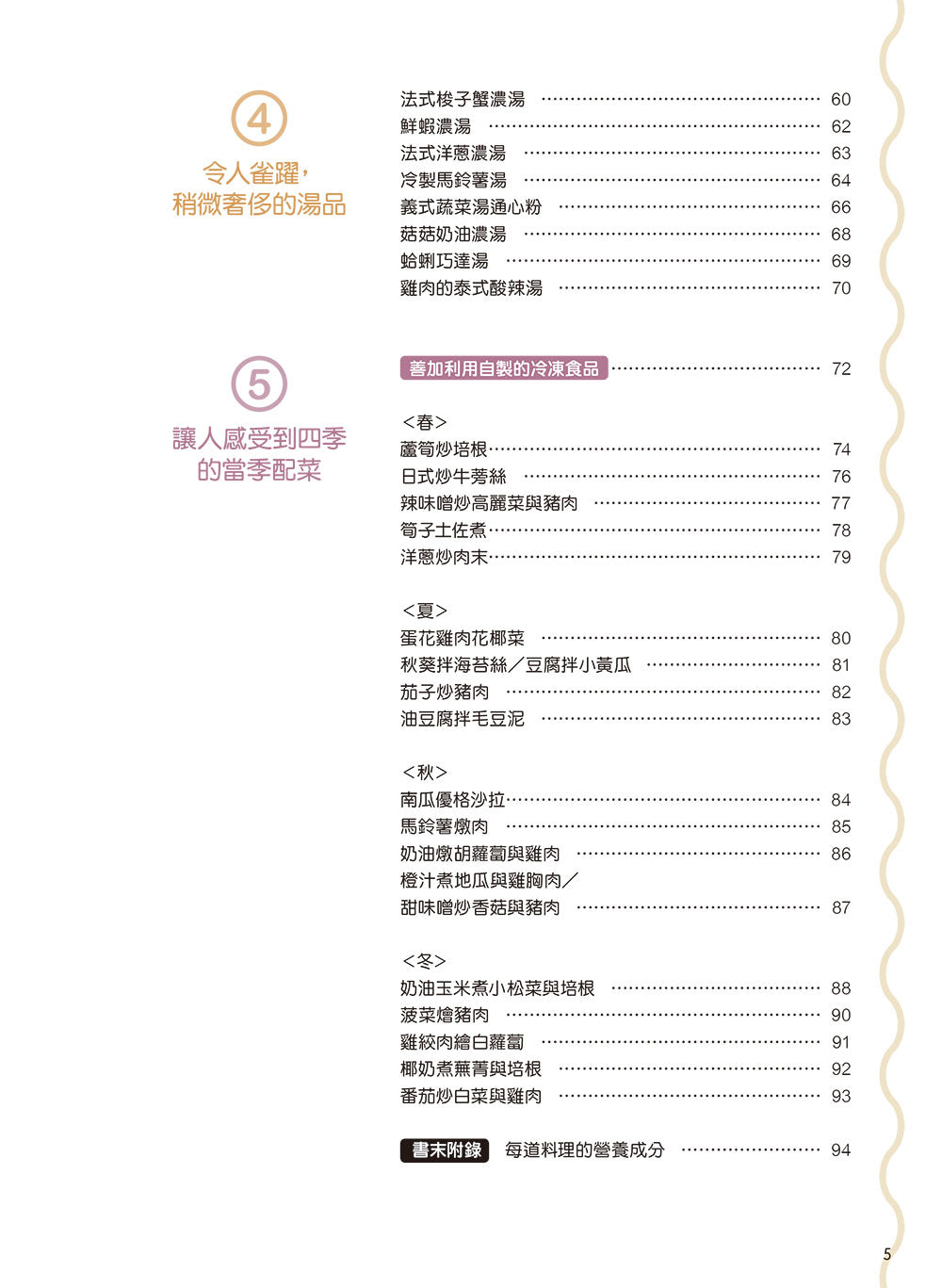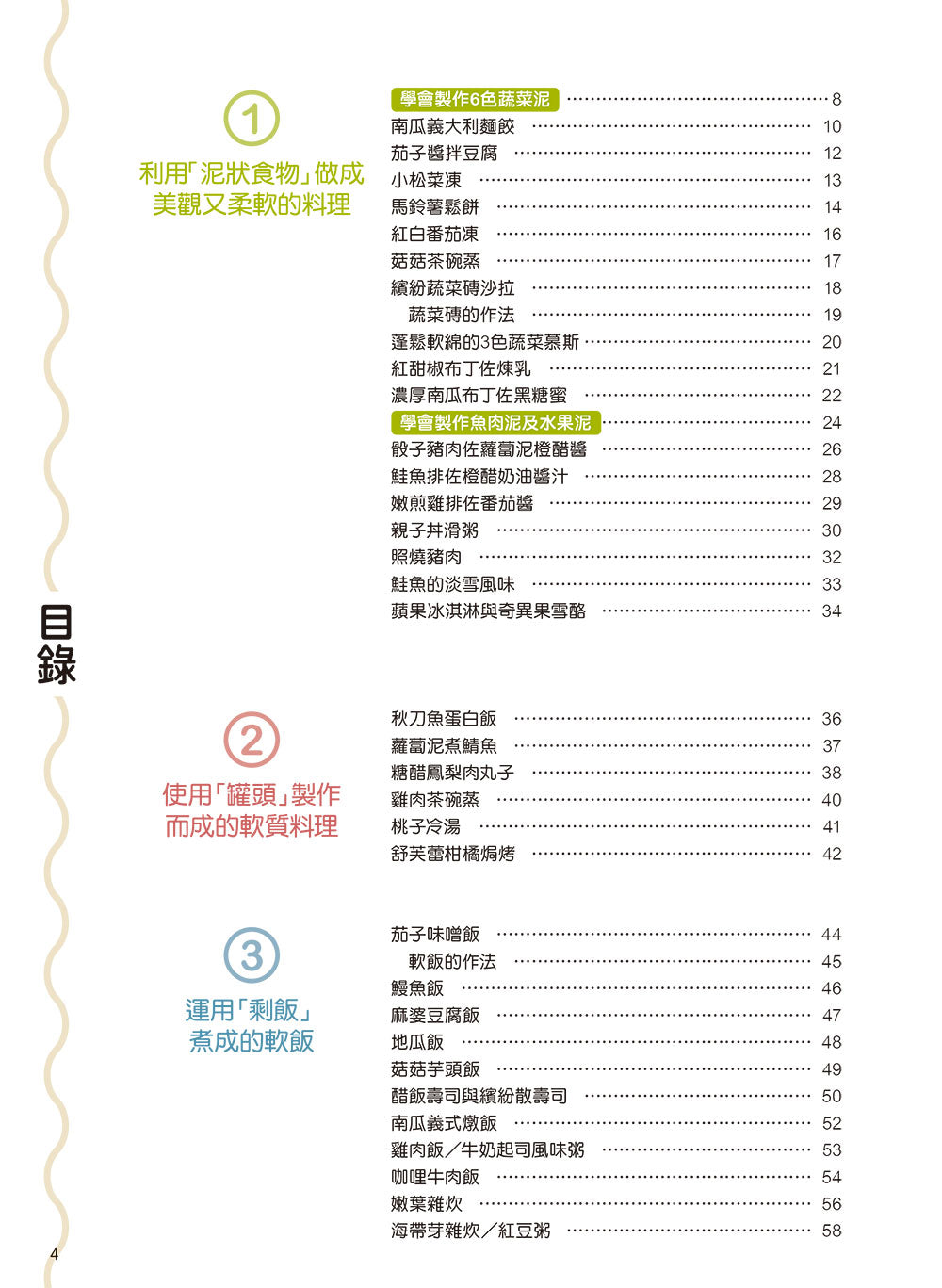 本書中介紹的料理不僅適合高齡者享用,軟嫩好消化而不失美味,其中善用罐頭與冷凍處理的食譜大大提升了製作的簡易度!每道料理看起來精緻卻不費時,讓長者和照顧者都可以享受在餐桌上的溫馨時光。