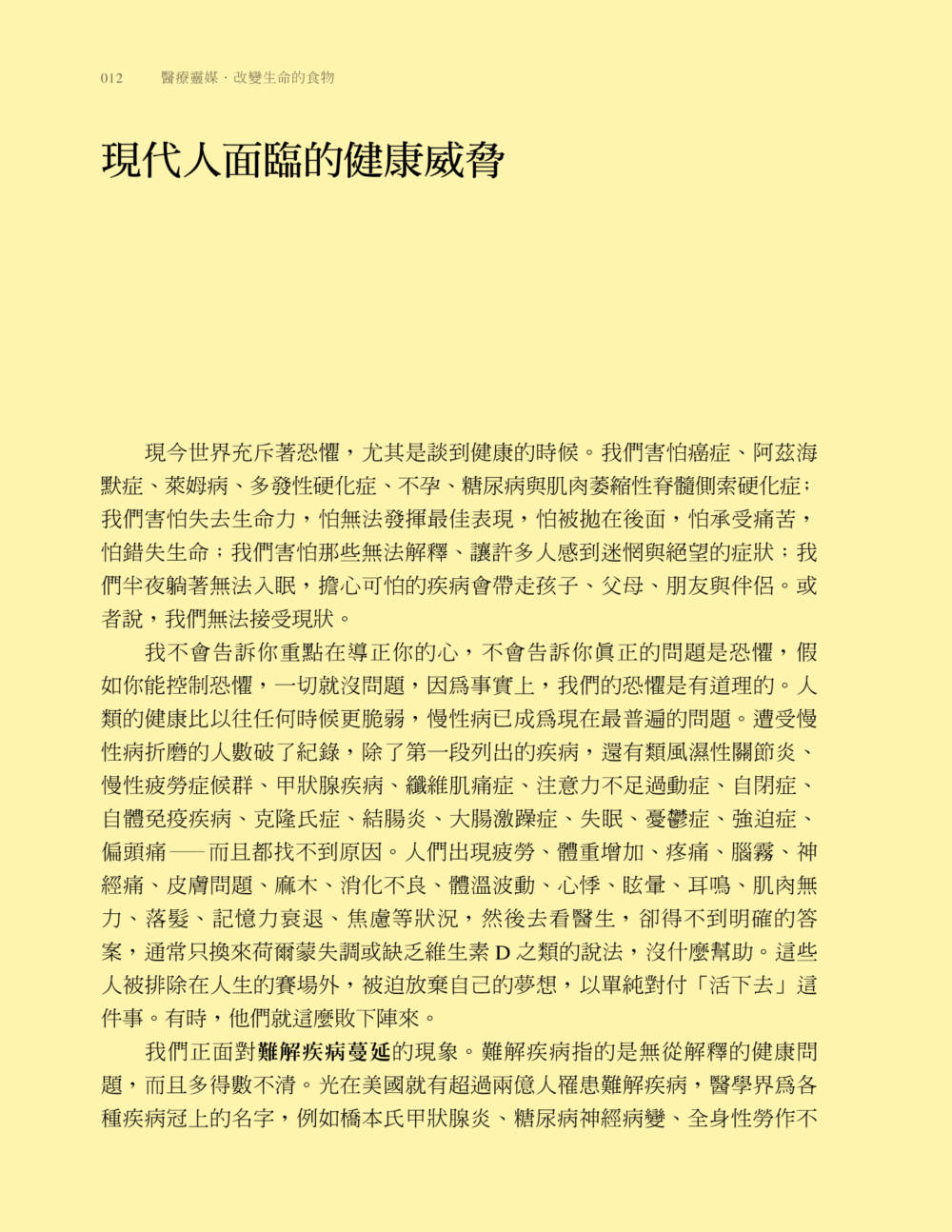 .將書中介紹的食物加入日常飲食裡,有助於緩解數百種症狀與疾病,例如癌症、糖尿病、自體免疫失調、甲狀腺疾病、消化問題、焦慮、疲勞、食物過敏、不孕、發炎、失眠、記憶力衰退、偏頭痛、體重增加等。