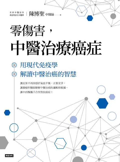 同時以中醫、西醫、基礎科學理論深入淺出地解釋腫瘤治療學,同時結合豐富的臨床實務,是這年代難得又珍貴的著作,十分值得一讀。初識陳博聖醫師,是在中醫結合現代免疫學治療癌症講座,對他嘗試用科學語言結合中醫理論,探索困難的腫瘤治療學,感到深深認同。如今他課堂上的精彩論述,終於付梓,中醫治療腫瘤的知識與治則終能以較為淺顯易懂的科學語言,與大眾分享,在這個全民防癌的年代,推薦給所有有志於瞭解中醫腫瘤治療的民眾與醫界同道。──莊佳穎 慈濟醫院中醫腫瘤科醫師