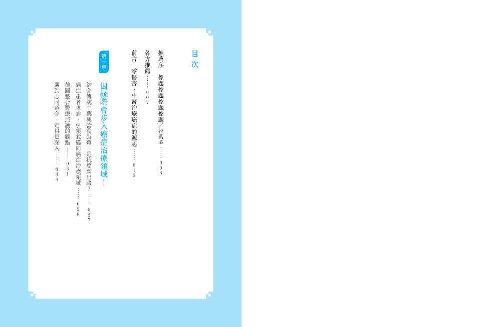 本書對癌友為一大福音,透過實際案例,呈現中醫在腫瘤治療的多面向手法,兼容而全面,讓癌友治療過程更多了信心及希望。──楊雅媜 臺中榮民總醫院傳統醫學科醫師