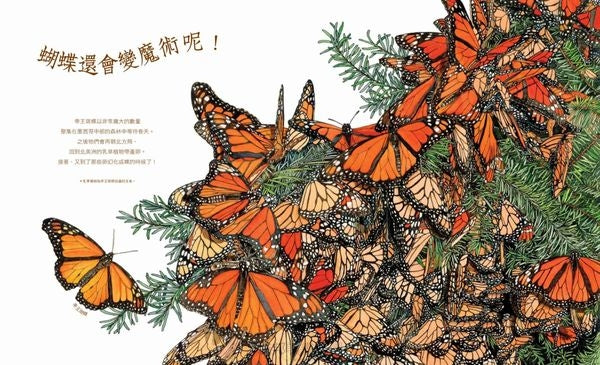 作者以生動的文字激發孩子的好奇心與觀察力,如詩般的語調和優雅的設計編排,將各種蝴蝶以及令人驚歎的蝴蝶知識介紹給孩子,連前後扉頁都能拿來玩「找找看,哪隻毛毛蟲會蛻變成哪隻蝴蝶」的遊戲呢!