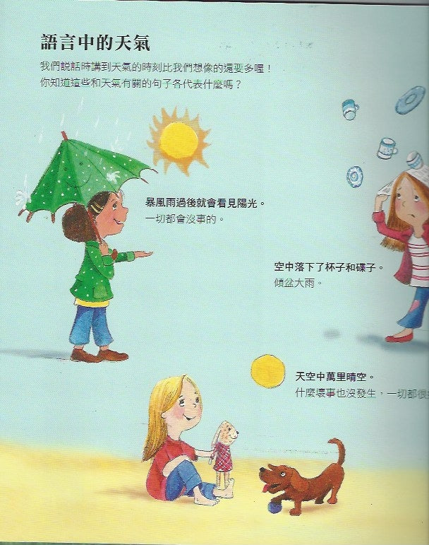 想不想知道有關天氣的事情呢?到底什麼叫做天氣?為什麼某一天下雨,隔天卻會出太陽?雲是怎麼來的?你要怎麼知道暴風雨就要來了?藉由本書,你能瞭解到更多有關太陽、風、水和大氣的事,也能學到它們如何一起決定天氣的變化。除此之外,還可以學到許多和天氣有關的有趣用語。翻開本書吧!就讓本書地超棒動手做和天氣小測驗,帶領你成為小小天氣專家吧!
